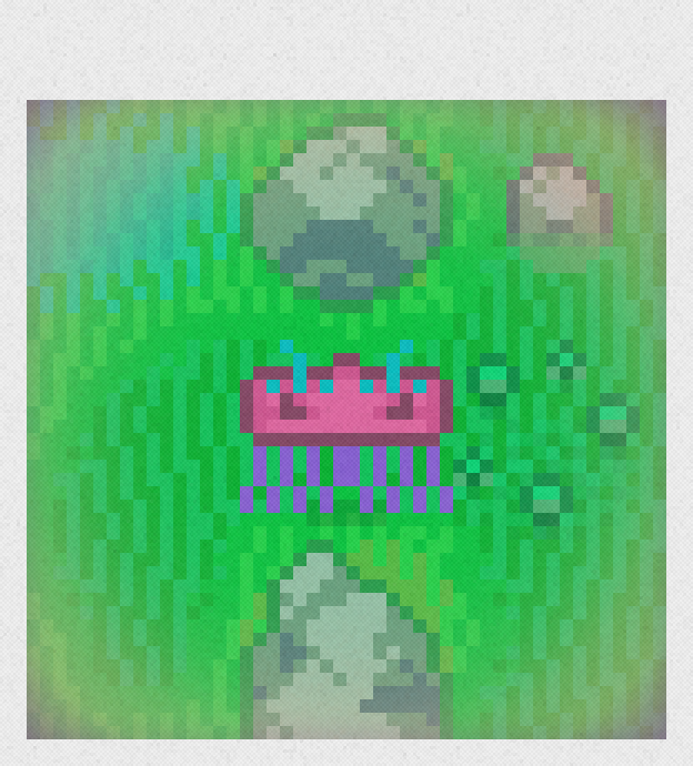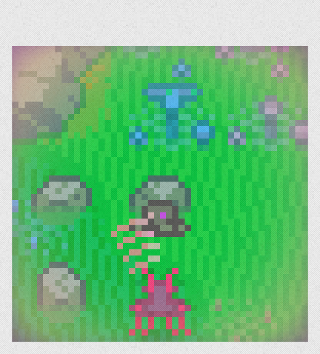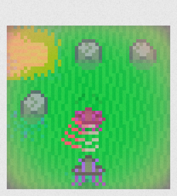 The anim’s brain synthesizes two sets of factors in a simple, understandable way. It checks each cardinal direction and assigns a value to it that could be positive or negative, and then moves in the direction with the highest value (or chooses randomly between the highest in the event of a tie). For each direction, it combines the three stimuli with the anim’s stats. The three stimuli are scent, which is produced by fungs (a tile with a fung on it that’s in an anim’s sensory radius will be perceived as scent by the anim); water, from water tiles; and motion, from other anims and eggs. Each of the nine combinations of stimuli and stats is assigned a value based on the anim’s genes (the nine I mentioned), and this value is used for the value given to each direction.