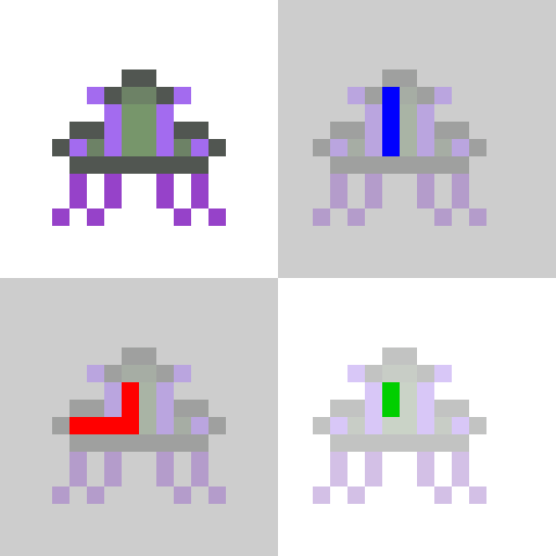 The second organism, Animatroids, contain the real depth of the game. They have fifteen genes controlled by a number of pixels called their DNA that can, like in the real world, mutate occasionally when a new specimen is born. Unlike the real world, the rate of mutation in Vilmonic is quite high; even halving it like I have with mods still results in most offspring having some sort of mutation (albeit usually neutral), which makes genetic drift particularly relevant along with the small populations sizes in my worlds of only 50x50 tiles. Six of the fifteen genes are used for the anim’s physiology, while the other nine are used for its brain, which I’ll explain later. It’s not important to know these six specifically for the documentary, but they do control features that are important.