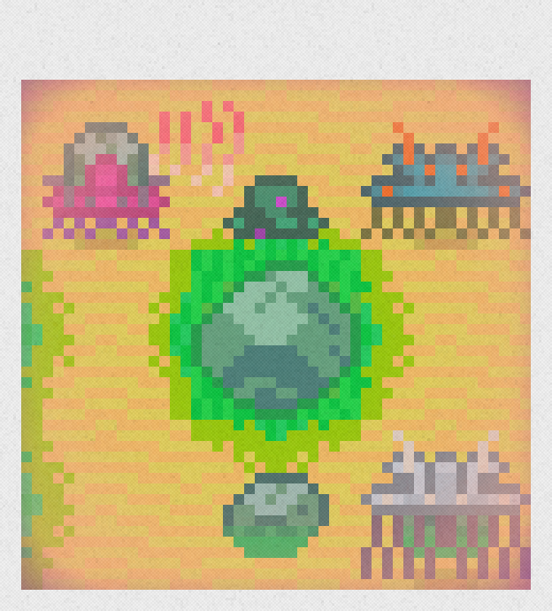 Vilmonic has two key organisms that make up its environments: Fungols and Animatroids.